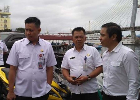 Kadishub Manado Michael Tandirerung dan Sekdishub Moody Monareh rutin memantau transportasi laut di Kalimas.