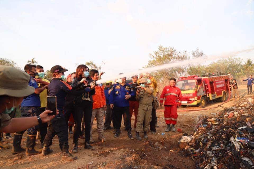 Bupati Tetty Ikut Padamkan Api di Lokasi TPA Amurang