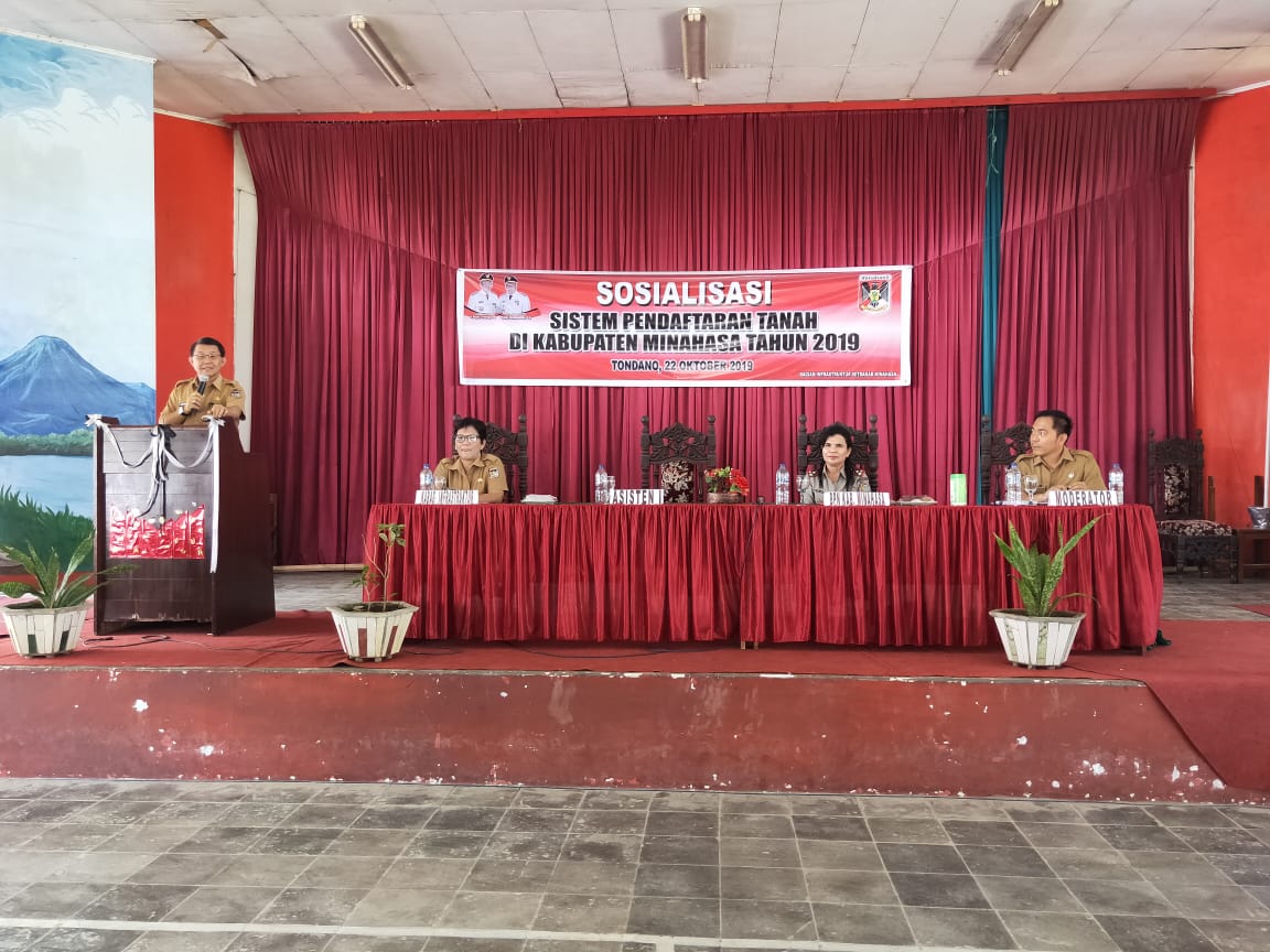 Sebelumnya kegiatan sosialisasi tersebut diawali laporan kegiatan oleh Kabag Infrastruktur James Kanter melalui Kasubag Perumahan Pemukiman dan Pertanahan Silvana Rantung. Dengan maksud kegiatan untuk tersedianya informasi bagi pihak pihak yang berkepentingan termasuk pemerintah desa mengenai tata cara pendaftaran tanah yang sesuai dengan ketentuan yang berlaku.