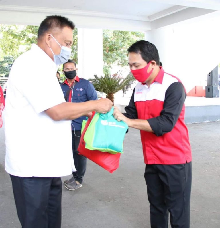 Bantuan ini diterima secara simbolis oleh pimpinan serikat buruh di Sulut.