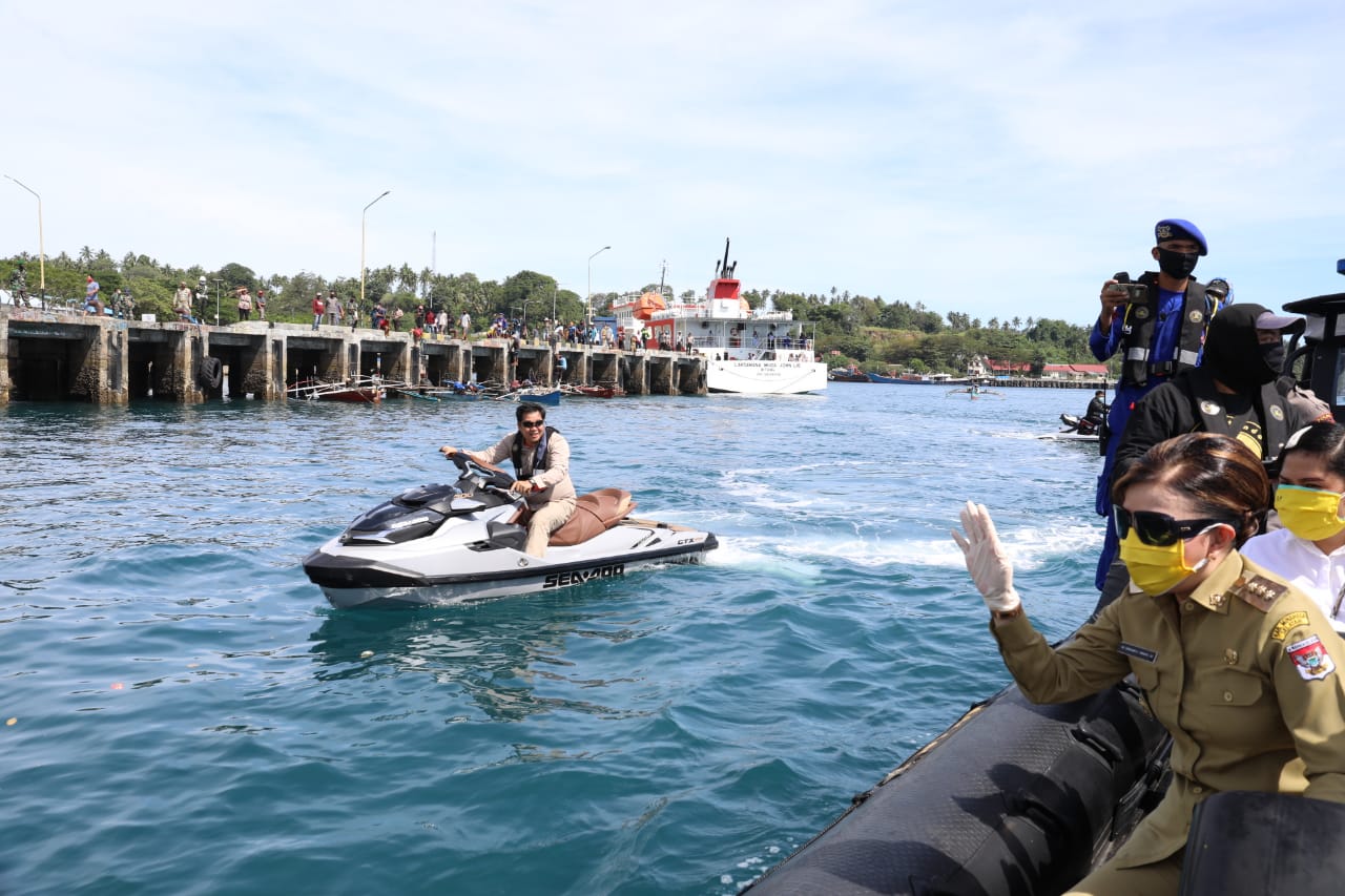 Di Minsel, rombongan disambut Bupati Minsel Tetty Paruntu. Adapun pembagian sembako dilakukan di tengah laut yang disambut gembira para nelayan penerima bantuan.
