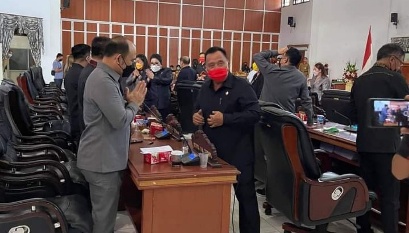 minahasamanadoterkini.com, MINAHASA – Ketua Dewan Perwakilan Rakyat Daerah (DPRD) Kabupaten Minahasa Glady Kandow memimpin Rapat Paripurna dalam rangka penandatanganan Nota Kesepakatan Rancangan Awal Perubahan RPJMD Tahun 2018-2023, serta penyampaian Rancangan Peraturan Daerah Kabupaten Minahasa, tentang pertanggung jawaban pelaksanaan Anggaran Pendapatan dan Belanja Daerah (APBD) Tahun 2020.