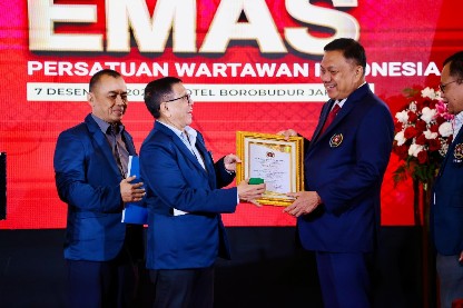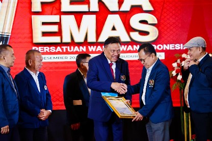 Pena emas itu diserahkan langsung oleh Ketua PWI Pusat Henry CH Bangun didampingi Sekjen PWI Sayid Iskandarsyah, di Hotel Borobudur, Jakarta, Kamis (7/12/2023).