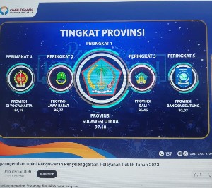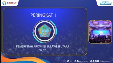 Pemprov Sulut sendiri mendapat predikat terbaik dengan meraih nilai 97. Penghargaan itu sendiri diterima langsung oleh Wagub Steven Kandouw.