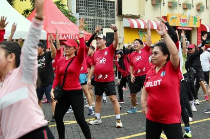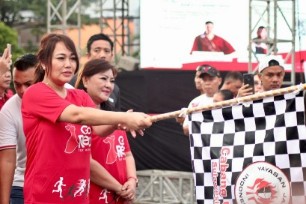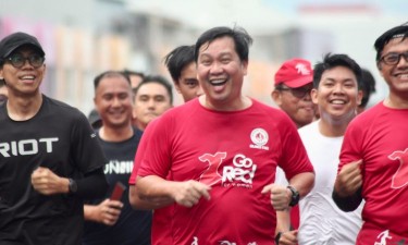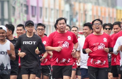 Wagub tampak bersemangat mengikuti fun run bersama para peserta lain. Di dalamnya ada Kepala Perwakilan BI Provinsi Sulut, Bupati Minahasa Selatan, Franky Wongkar, Duta Go Red For Woman yang juga artis ibukota, Velove Vexia, pengurus YJI Pusat, YJI Sulut dan masyarakat.