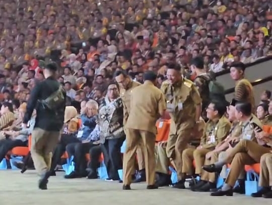 Yang menarik, di antara puluhan kepala daerah yang duduk di barisan terdepan, hanya Gubernur Olly yang mendapat penghormatan dan sapaan langsung dari Mendagri Tito Karnavian.