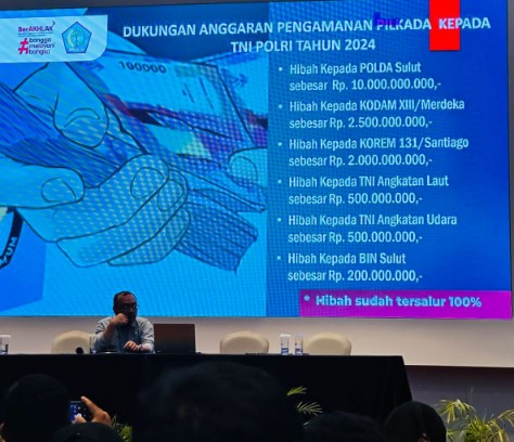 manadoterkini.com, SULUT – Pemerintah Provinsi (Pemprov) Sulawesi Utara (Sulut) mengucurkan dana hibah pengamanan Pemilihan Kepala Daerah (Pilkada) serentak 2024 senilai Rp. 15,7 miliar.