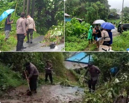 Dalam aksi tanggap darurat ini, personel kepolisian membantu evakuasi warga yang terjebak banjir, mengamankan jalur transportasi yang terdampak longsor.