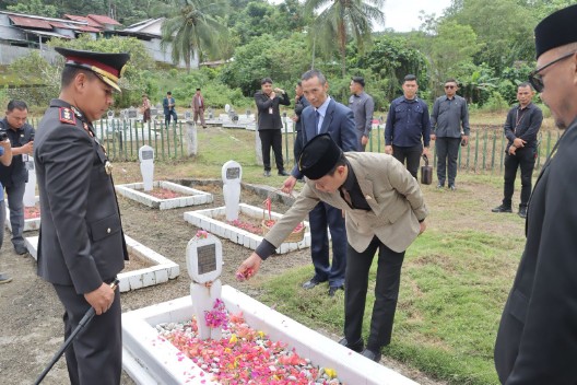 Suasana semakin haru ketika dilakukan prosesi tabur bunga di pusara para pahlawan yang dilanjutkan dengan Do’a bersama.