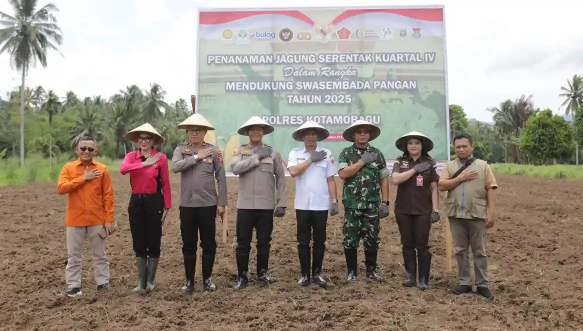 Penanaman Jagung Serentak dilaksanakan Polres Kota Kotamobagu dalam rangka mendukung Swasembada Pangan Nasional Tahun 2025, dihadiri Kapolres Kotamobagu, AKBP Irwanto, S.I.K, Wakapolres Kotamobagu, Kompol. Romel Pontoh, S.I.P, Kasdim 1303 Bolaang Mongondow Mayor Arh. Achmad Janis, perwakilan Forkopimda Kota Kotamobagu, Kepala BPS Kota Kotamobagu Jasni Makalunsenge, Kepala Perum Bulog Sub Divre Bolaang Mongondow Ismail Aziz, serta para pejabat di lingkungan Polres Kota Kotamobagu. (**)