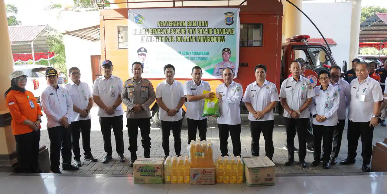 Bantuan itu diserahkan langsung oleh wali Kota dr. Weny Gaib bersama Wakilnya  Rendy Mangkat yang juga ditemani Kapolres Kotamobagu AKBP. Irwanto, S.I.K, di kantor Bupati Bolmong, Rabu, 5 November 2025. Siang.