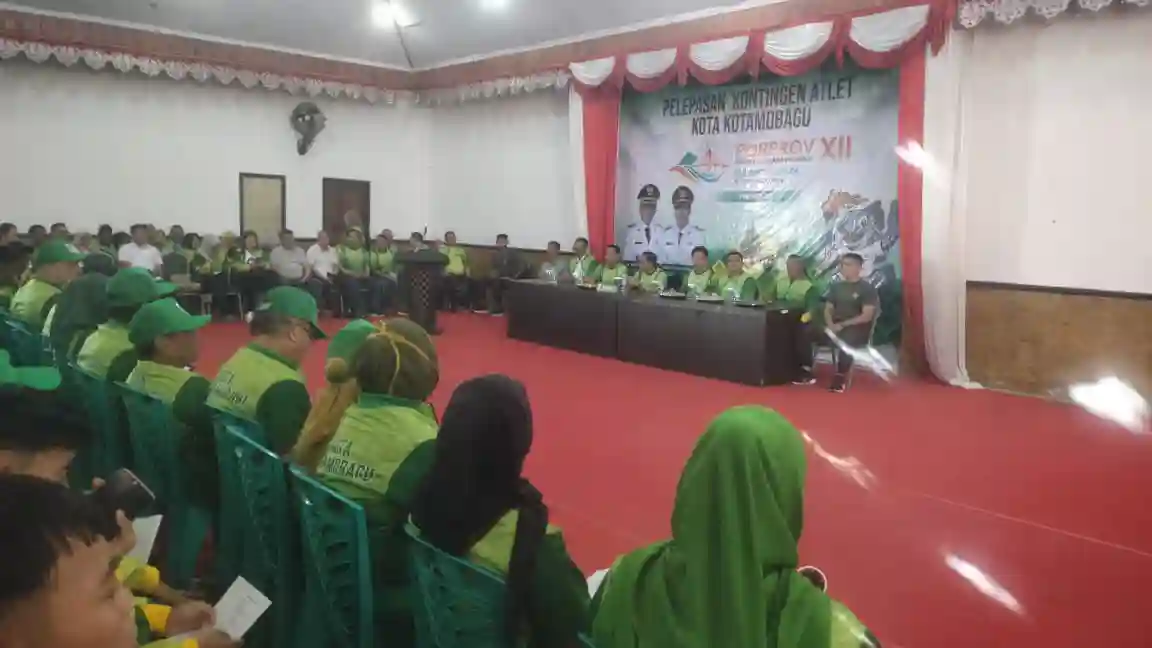 Pelepasan Atlet ini, dilaksanakan di Aula Rumah Dinas Wali Kota Kotamobagu, Jumat, 14 November 2025, Pagi.