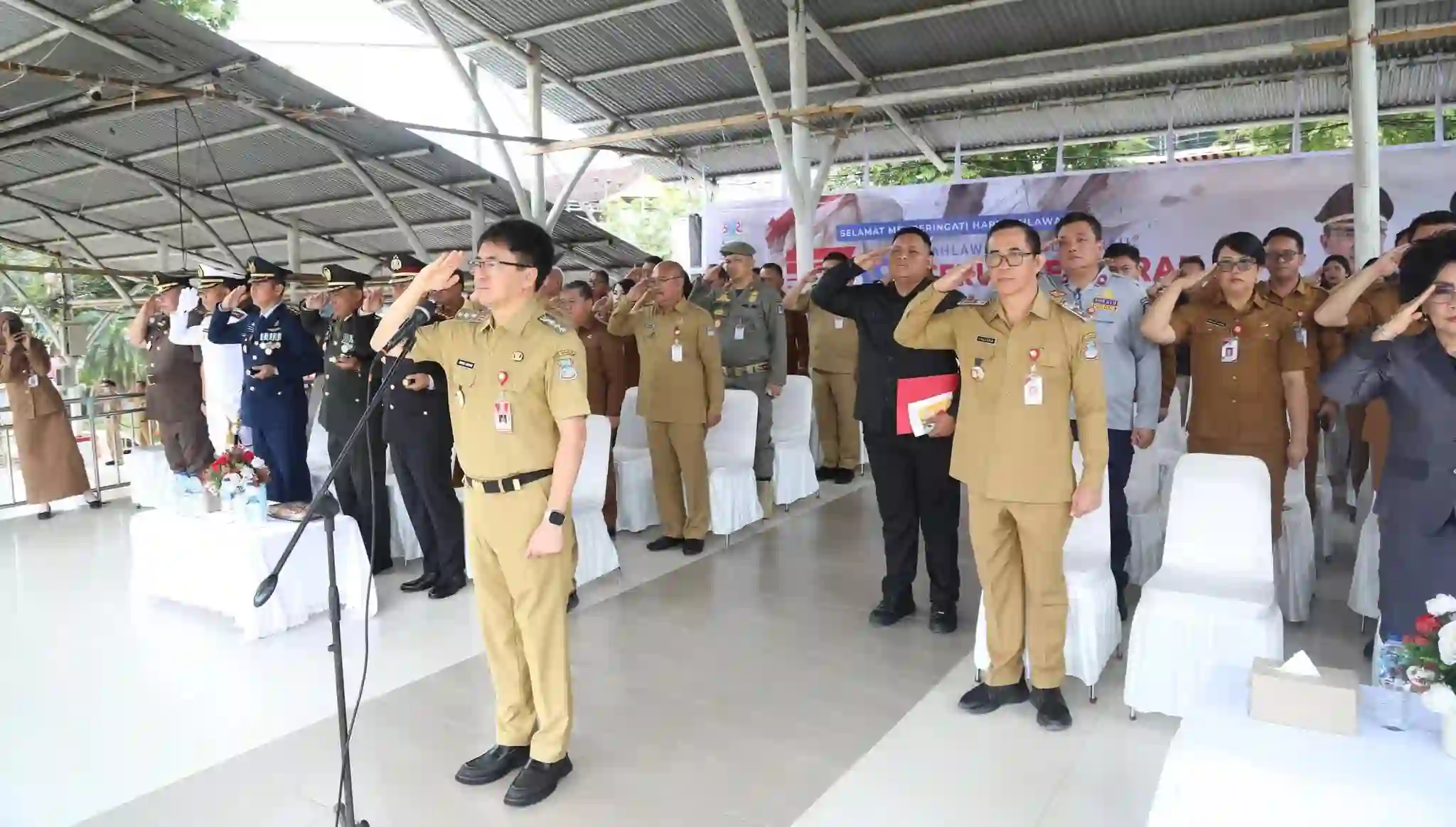 Upacara yang bertema “Pahlawanku Teladanku Terus Bergerak Melanjutkan Perjuangan” dihadiri unsur Forkopimda, hingga jajaran pejabat daerah mengikuti rangkaian upacara dengan formasi rapi. Sekretaris Daerah Kota Manado dr. Steaven Dandel M.P.H turut hadir mendampingi jalannya kegiatan.