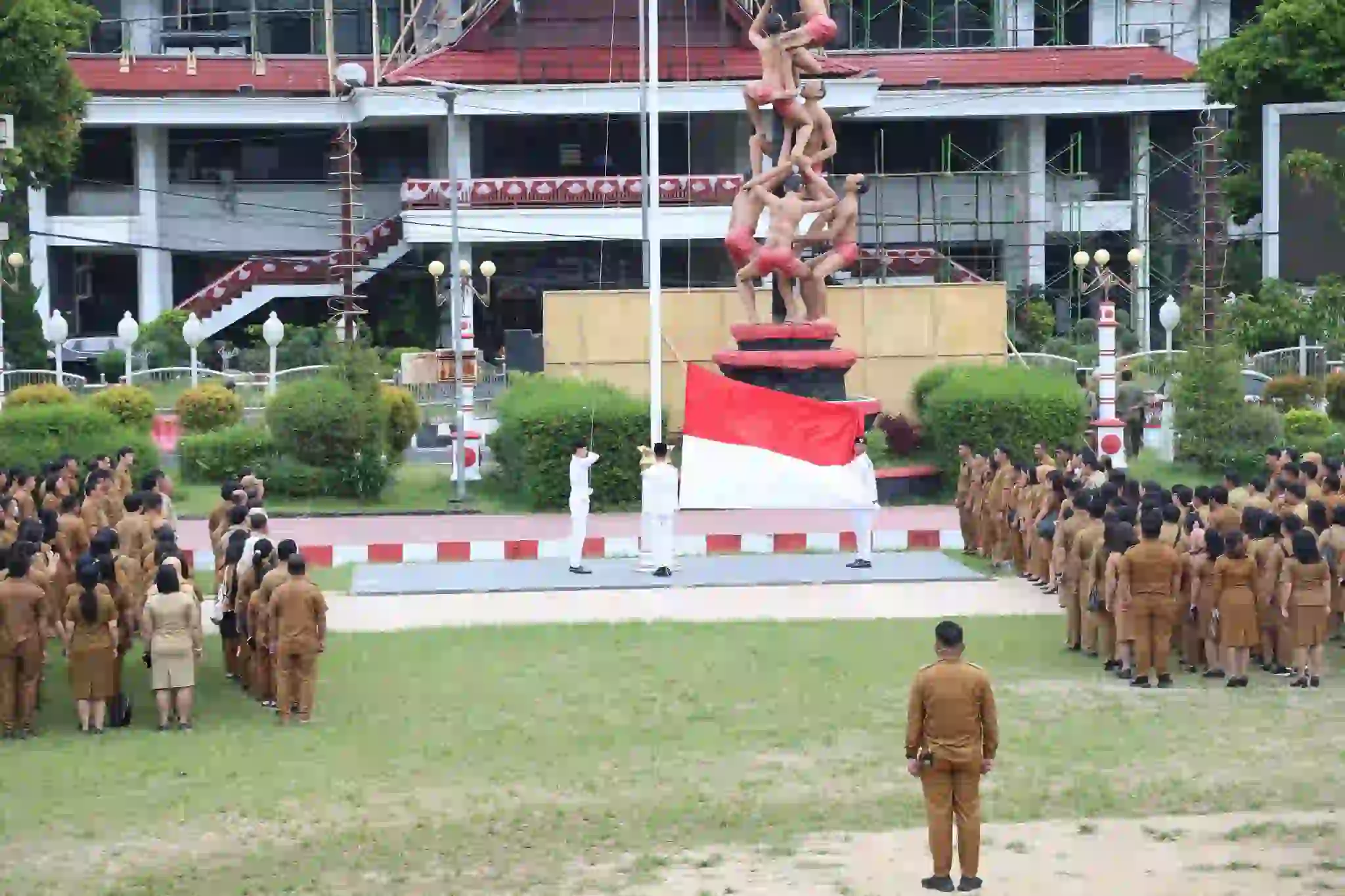 Upacara ditutup dengan hening cipta. Seluruh peserta berdiri diam, membiarkan sunyi menjadi penghormat tertinggi untuk para pahlawan bangsa.