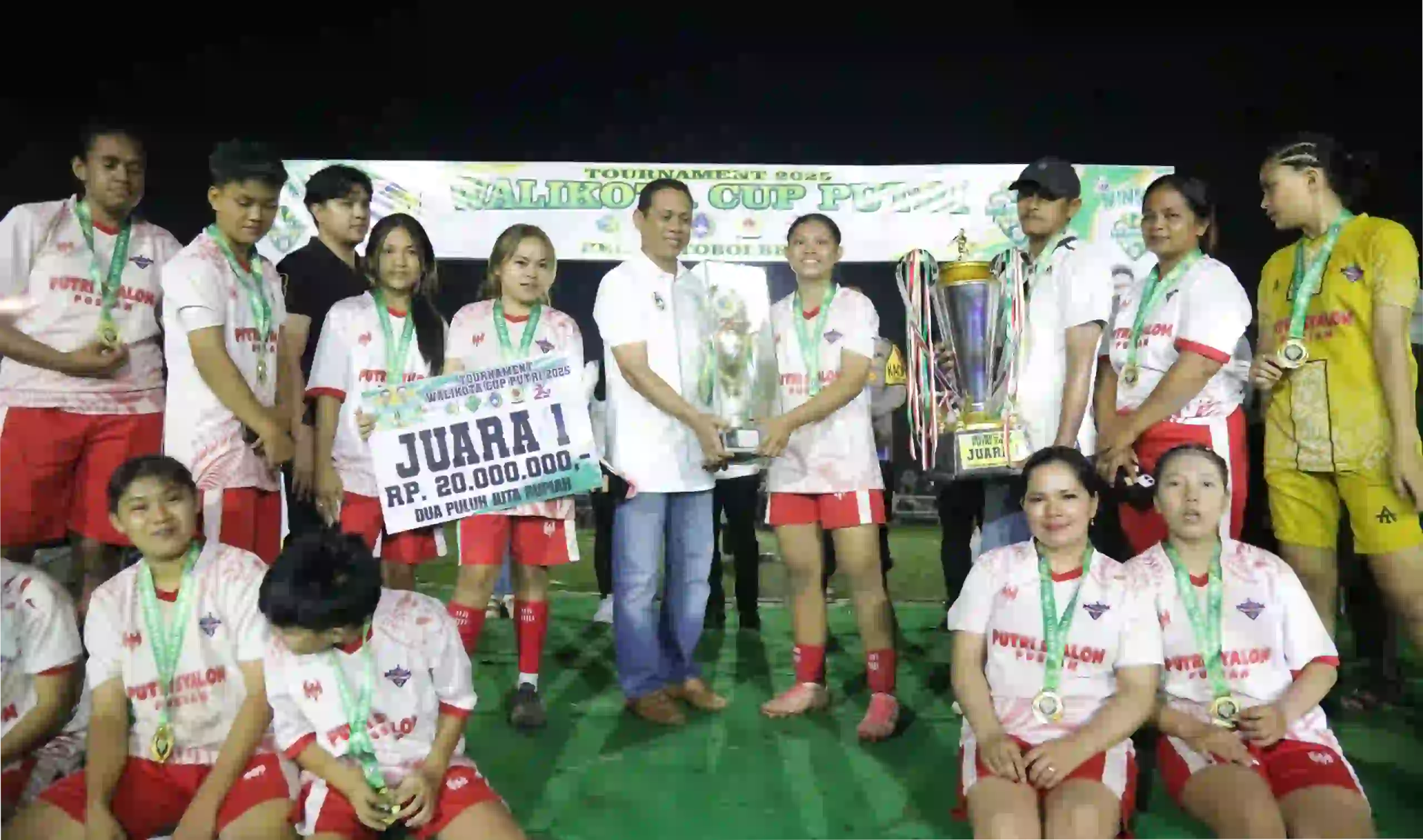 manadoterkini.com, KOTAMOBAGU – Wali Kota Kotamobagu, dr. Weny Gaib, Sp.M., menutup Turnamen Sepak Bola Wali Kota Cup Putri Tahun 2025 di Lapangan Olahraga Kelurahan Motoboi Besar, Sabtu,27 Desember 2025, Malam.