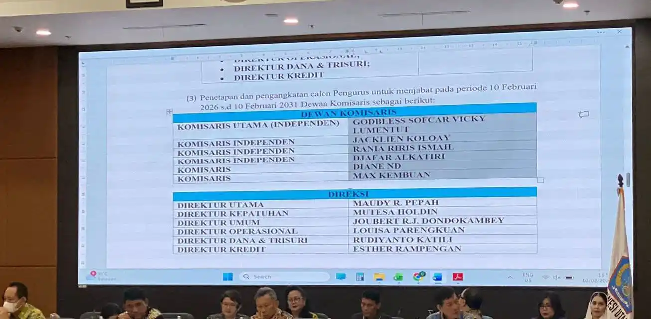manadoterkini.com, MANADO – Rapat Umum Pemegang Saham Luar Biasa Bank Sulut Gorontalo (BSG) akhirnya menetapkan susunan pengurus baru untuk masa bakti 2026–2031.