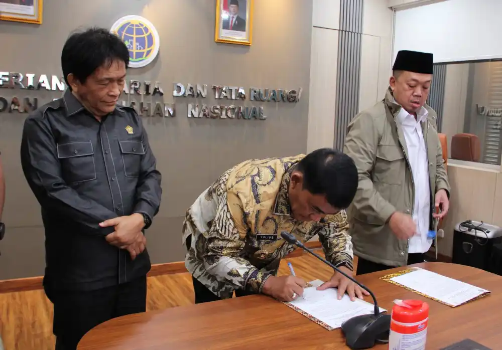 Pemerintah Provinsi Sulawesi Utara tinggal menunggu pengesahan Peraturan Daerah (Perda) RTRW 2025–2044 yang memimpin langsung kunjungan ke Kementerian ATR/BPN diterima di ruang rapat menteri sebagai bagian dari tahapan finalisasi dokumen tata ruang daerah.