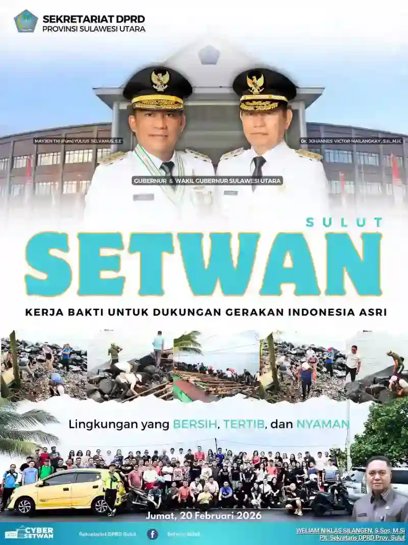 manadoterkini.com, MANADO – Sekretariat DPRD Provinsi Sulawesi Utara (Sulut) melaksanakan kegiatan kerja bakti dalam rangka mendukung Gerakan Indonesia Asri, Jumat (20/2/2026).