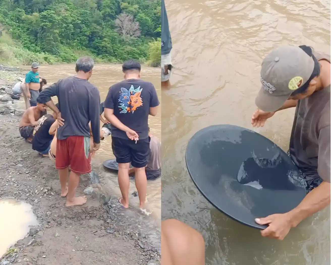 Warga mengungkapkan mereka menggunakan denga alat seadanya, Sementara batok kelapa atau karpet menjadi wadah untuk butiran emas yang berhasil diperoleh.